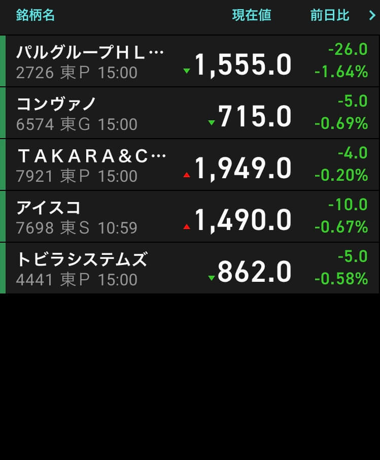 株日記 前日比-110,400円 kurosuke 2022年4月6日 お疲れ様です。 本日の資産評価額は前日比で-110,400円となりました。 日経平均は-437.68(-1.58%) マザーズは-17.66(-2.10%)でした。 パルグループHDが-26(-1.64%)と調整しました。 保有株たちはまだ耐えてくれたんじゃないかと思いますが、 ここ最近上昇が続いていましたので調整しそうな気がしてきました。 当分我慢が続きそうです。 にほんブログ村